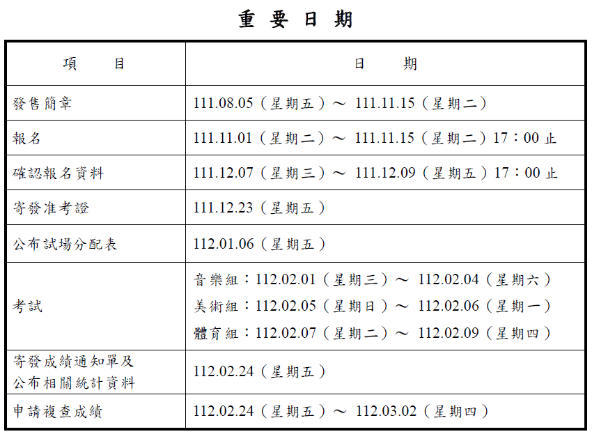 術科考試 112大學申請入學參加術科考試校系一覽表公告 112學年度大學術科考試簡章_公告版 112學年度大學術科考試簡章_公告版 檔案名稱檔案大小檔案格式下載112學年度大學術科考試簡章_公告版.pdf3.68 MB新視窗開啟檔案 112學年度大學術科考試簡章_公告版.pdf(點擊下載檔案) 112學年度大學術科考試簡章_公告版 想知道更多資訊可點選下面聯結: 大學術科委員會聯合會