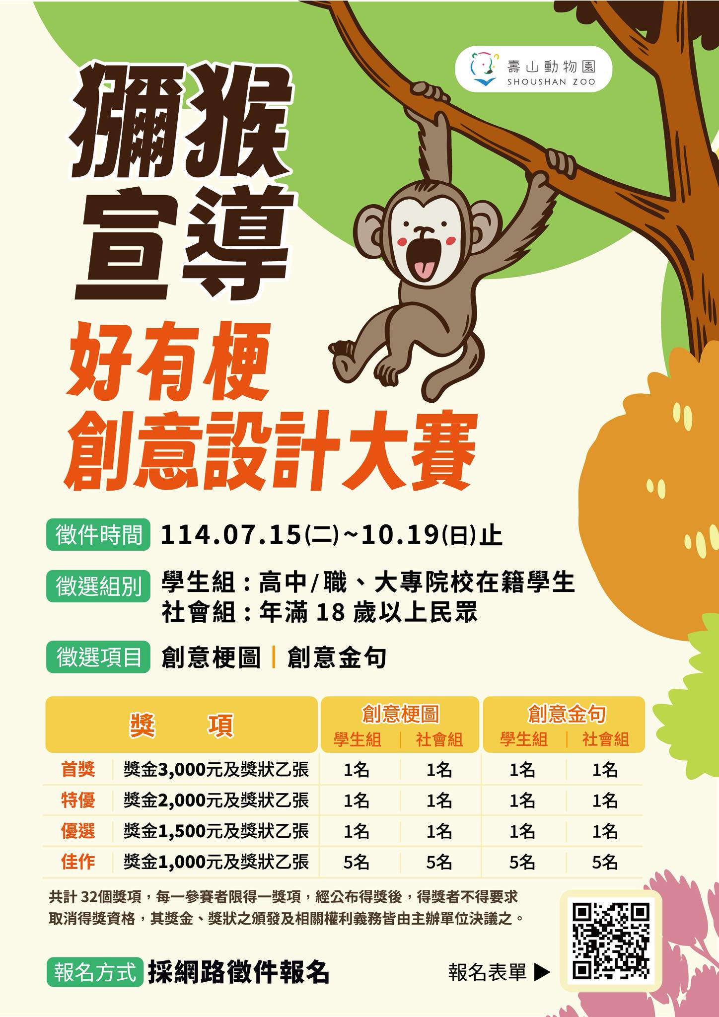 公告主旨 | 【轉知】高雄市政府觀光局辦理壽山動物園「獼猴宣導好有梗」創意設計大賽 |