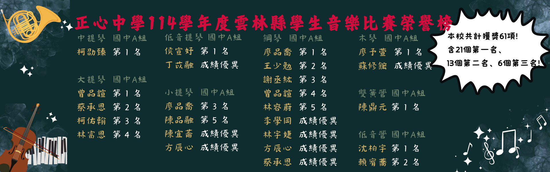 | 公告主旨 | 【音樂比賽】114學年度雲林縣學生音樂比賽榮譽榜 |