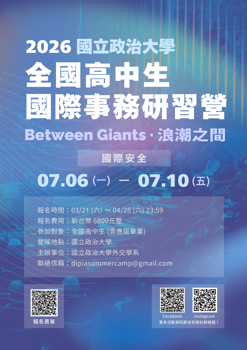 | 公告主旨 | 國立政治大學外交學系「2026全國高中生國際事務研習營」 |