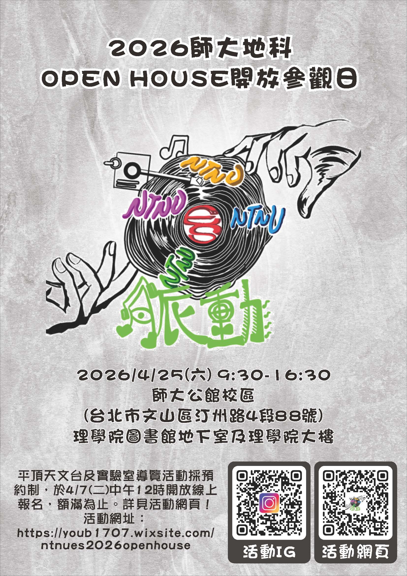 | 公告主旨 | 國立臺灣師範大學地球科學系於公館校區舉辦「2026師大地科開放參觀日」 |