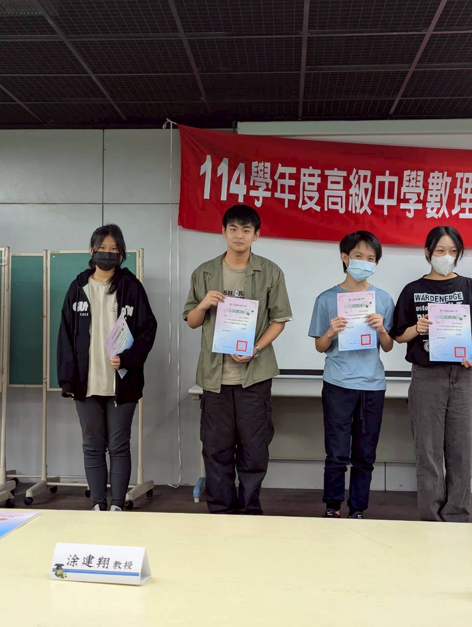 校園公告 公告主旨 無畏風雨飄渺,第三區自然學科能力競試(第一天)成績優異 發佈日期 2025 年 11 月 13 日 發佈單位 設備組 公告類別 榮譽榜 公告等級 無 點閱次數 75 公告內容 在颱風前夕的緊張氣氛中,我們的學生仍以穩定的實力與堅定的意志迎戰第三區能力競試,展現卓越學習成果。本校同學在本次比賽中表現亮眼,獲得多項佳績,特此公告並致上最誠摯的祝賀與鼓勵。 🌟 得獎名單如下: 📐 數學科 高一誠 溫家豪 佳作 指導老師: 高聖傑 高一誠 蕭聖翰 佳作 指導老師: 高聖傑 🧬 生物科 高三誠 吳秉宸 佳作 指導老師: 陳姍姍 🌏 地球科學科 高三誠 朱奕安 第四名入選全國決賽 恭喜以上得獎同學,也感謝指導老師的辛勤付出。 期盼同學們持續保持對學習的熱情,在未來的挑戰中再創佳績! 全體師生一仝 敬賀 相關附件 【2025-11-13】【營隊】國立中興大學2026年寒假Python程式設計系列、ACP與SSE色 ... 【2025-11-13】德明財經科技大學「高中職數位素養課程」線上影音課程