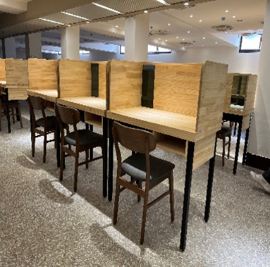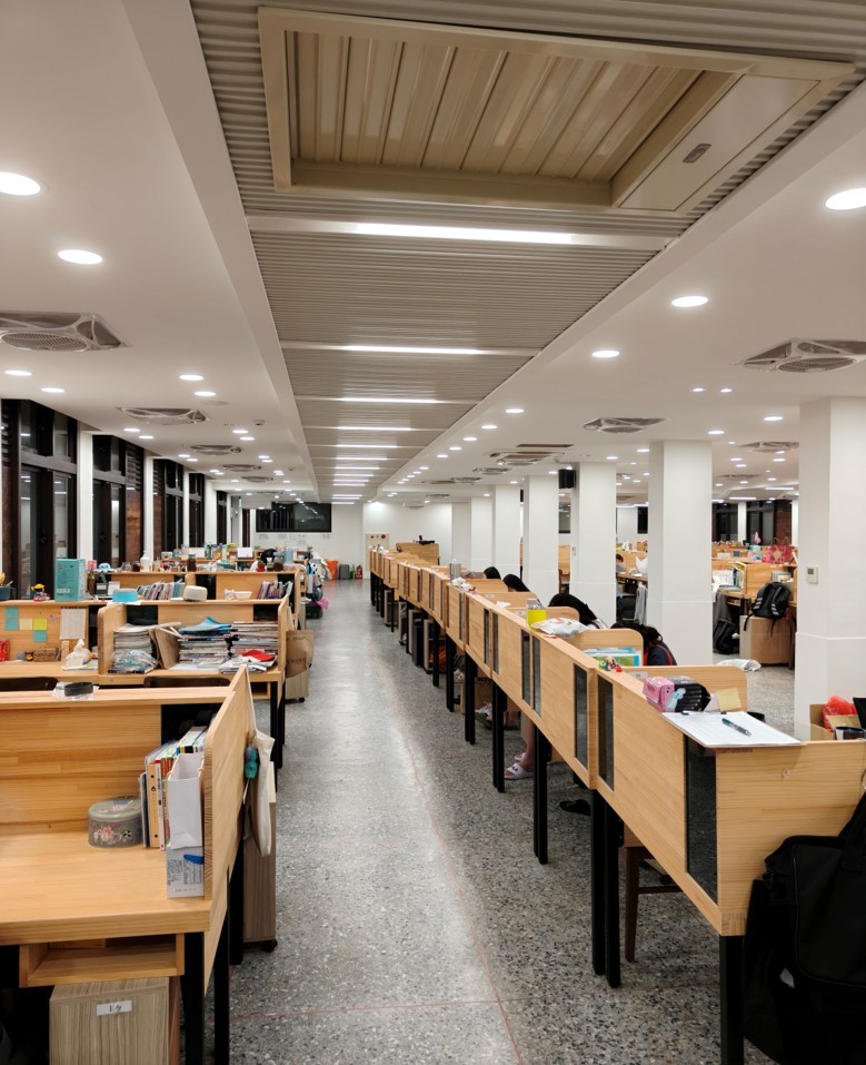 提供一人一桌自律學習和尊重他人的讀書環境。