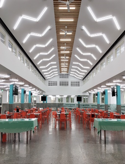提供學生乾淨、衛生、舒適的用餐環境;適時提供悅耳音樂,促進用餐氣氛,並沖淡一天的學習疲勞。