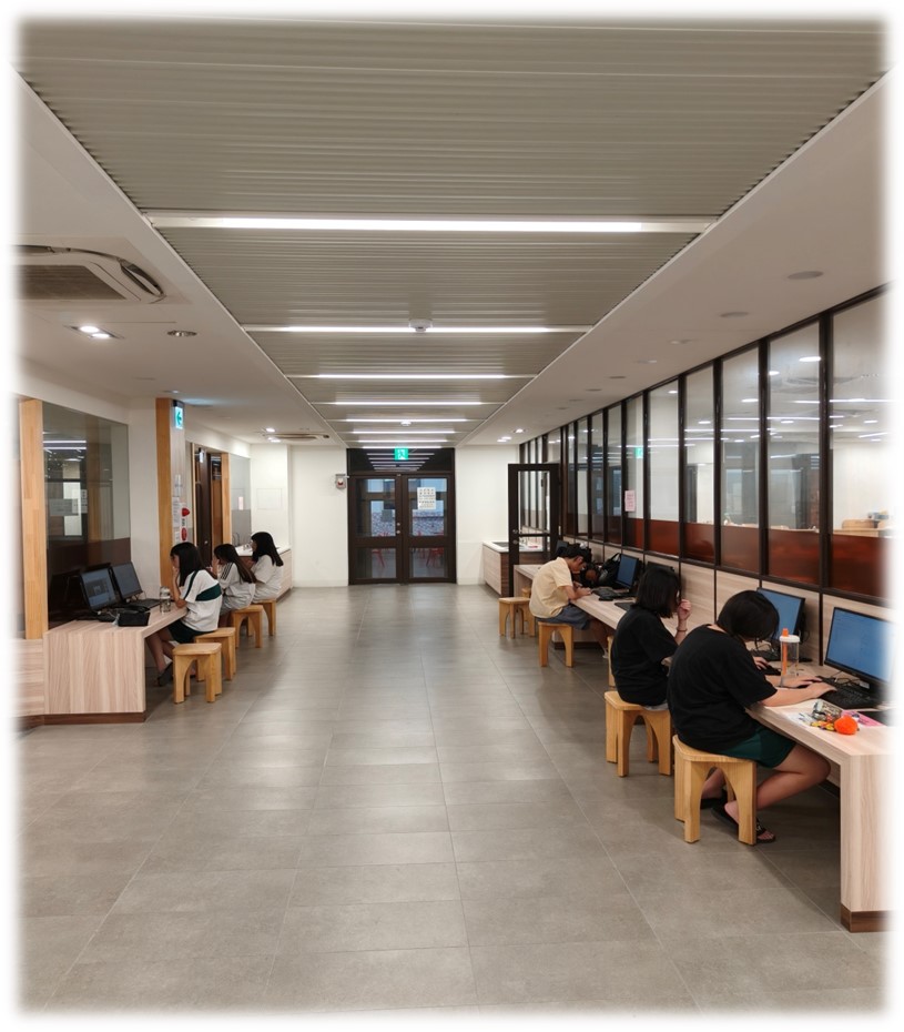 - 一樓:會客室、大自習室、電腦室、討論室、老師辦公室